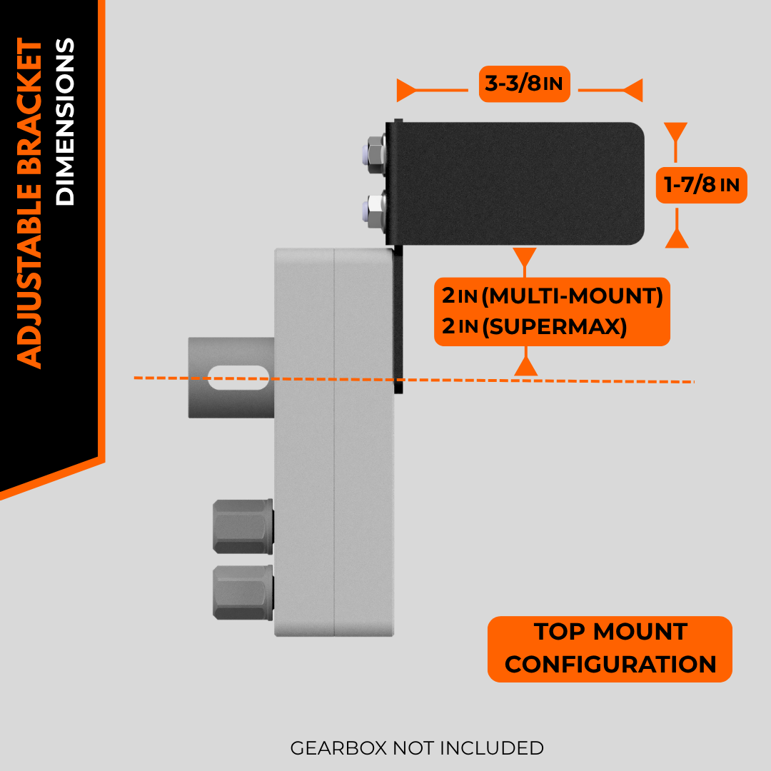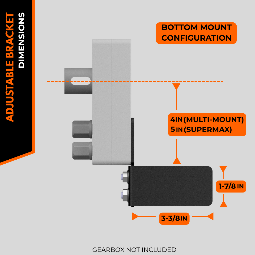 The Adjustable Bracket expands your mounting range beyond the standard bracket, allowing you to fit larger jacks and handle applications with limited access. With adjustable spacing from 0 to 6.25" and extended 3.75" legs, it provides the flexibility and reach needed for non-standard setups.